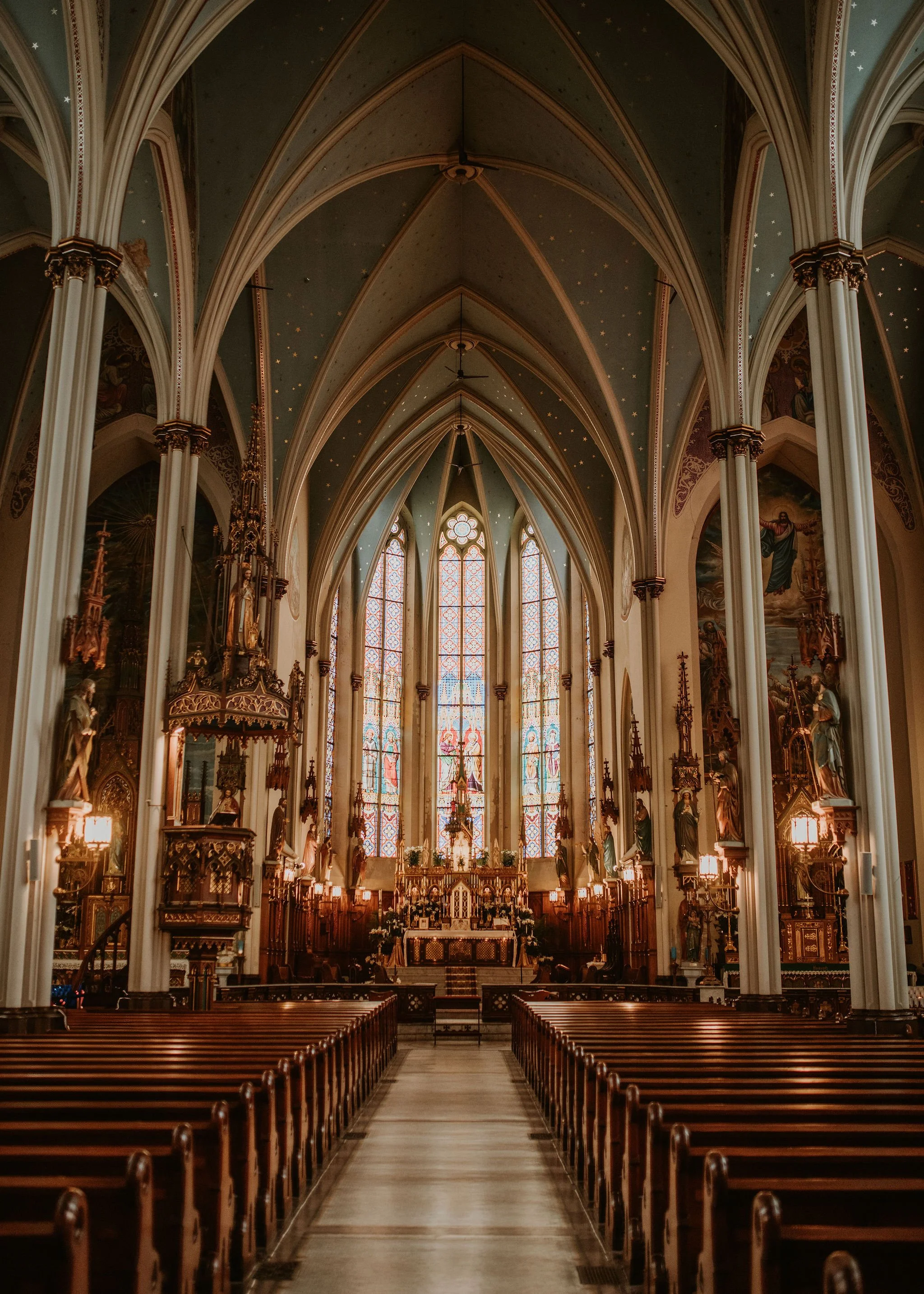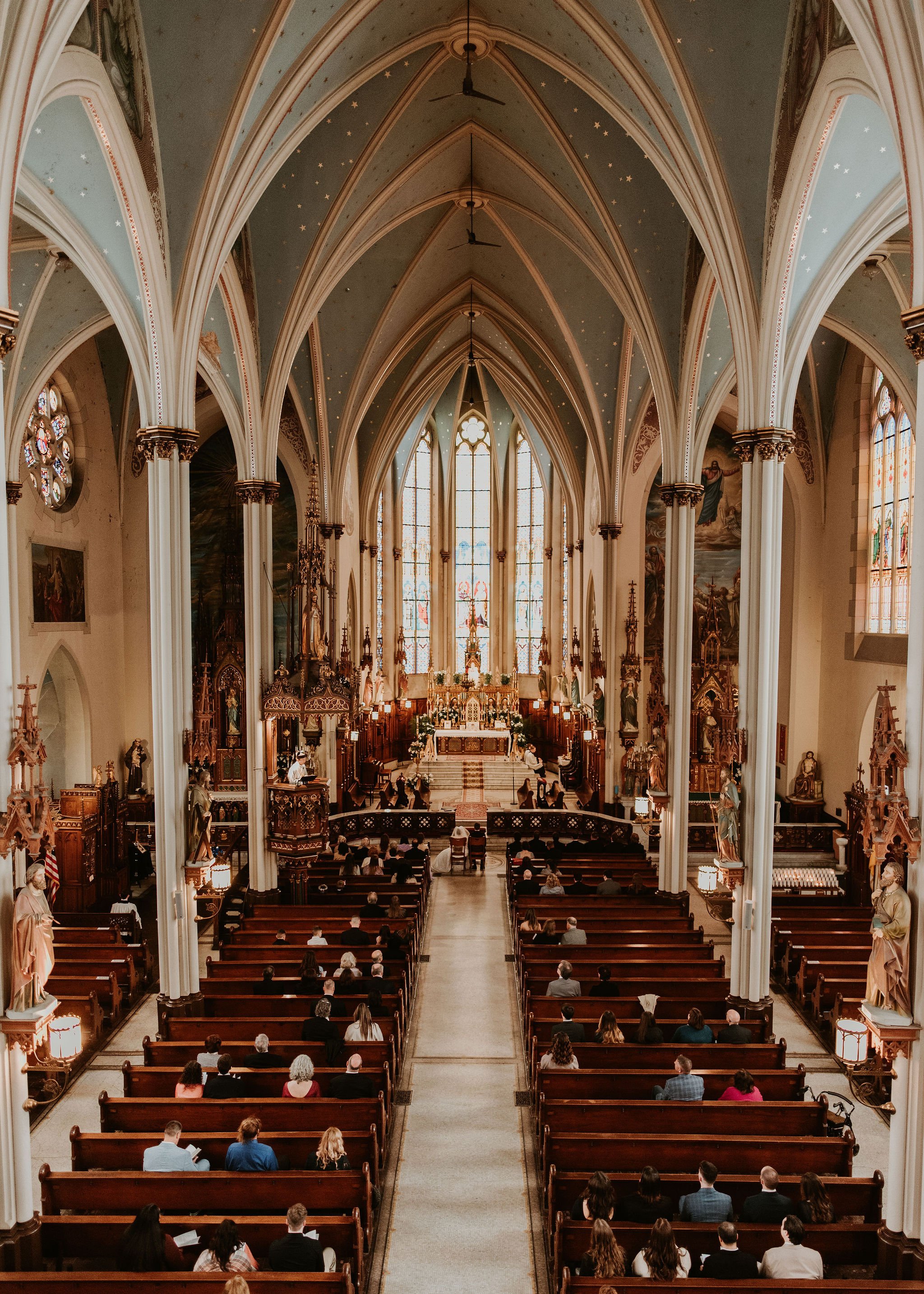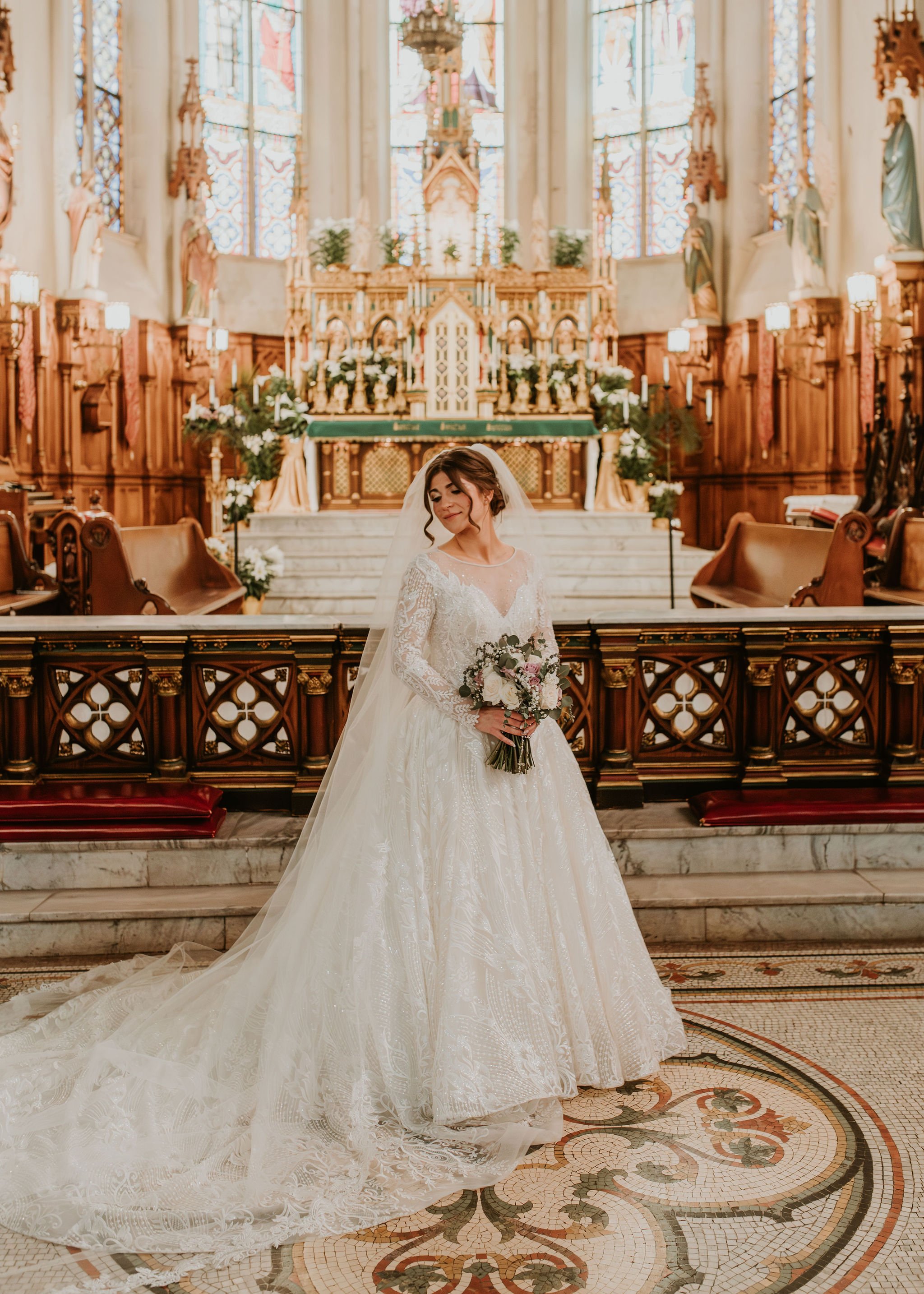 Their beautiful ceremony was at St. Joseph Shrine in Detroit, Mi. We then went to the Fisher building in downtown Detroit for portraits. HIGHLY recommend! Then the reception was at Petruzzelloโs. I loved working with this couple so much.